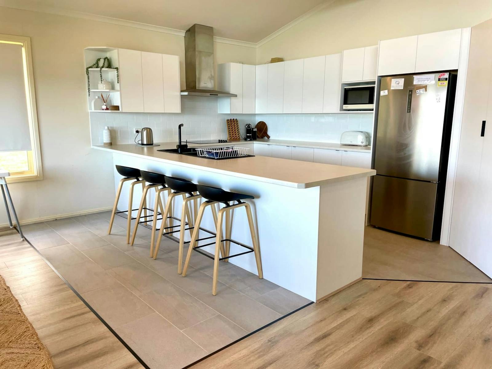 The two dining areas are ideal for any occasion and are both adjacent to the NEW kitchen which has a large pantry, dishwasher and breakfast bar. There is a large formal dining table for evening meals or conferencing, or the smaller round table for more casual eating/gathering.